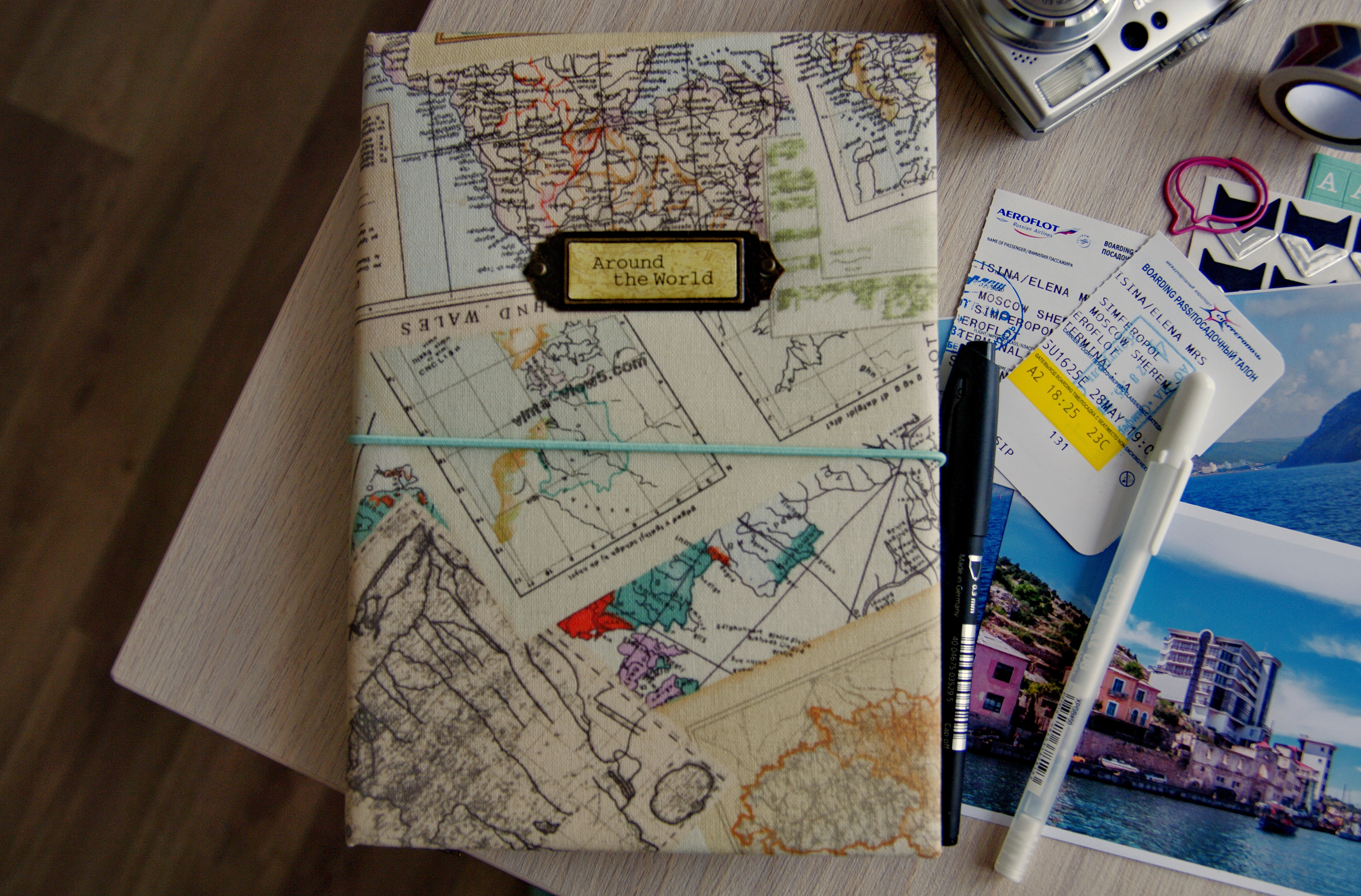 Резинку можно застегнуть несколькими способами. Обложка из плотного хлопка с принтом. Формат А5, книжный переплет